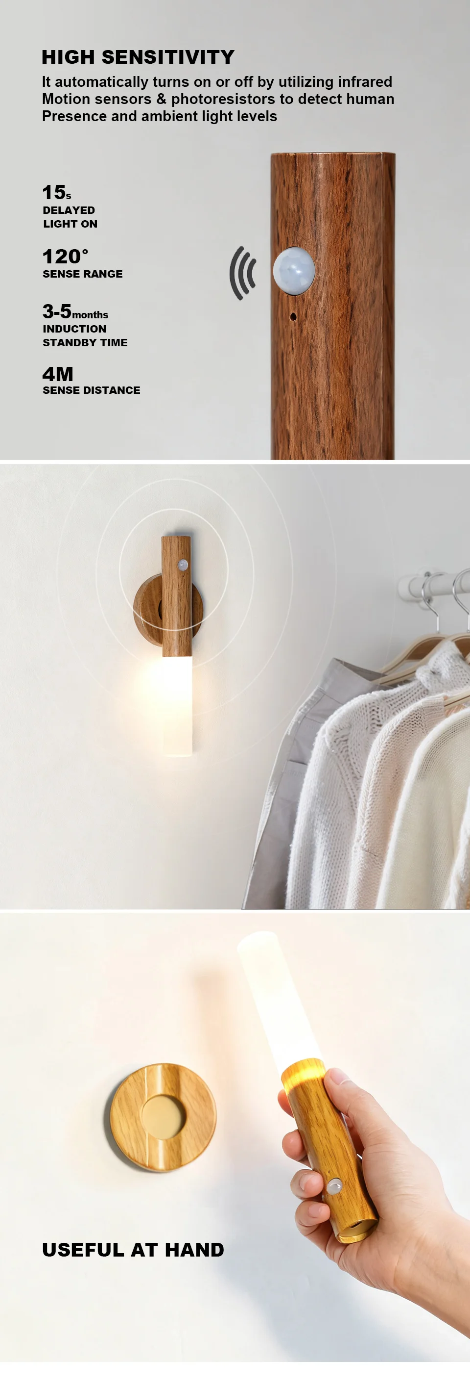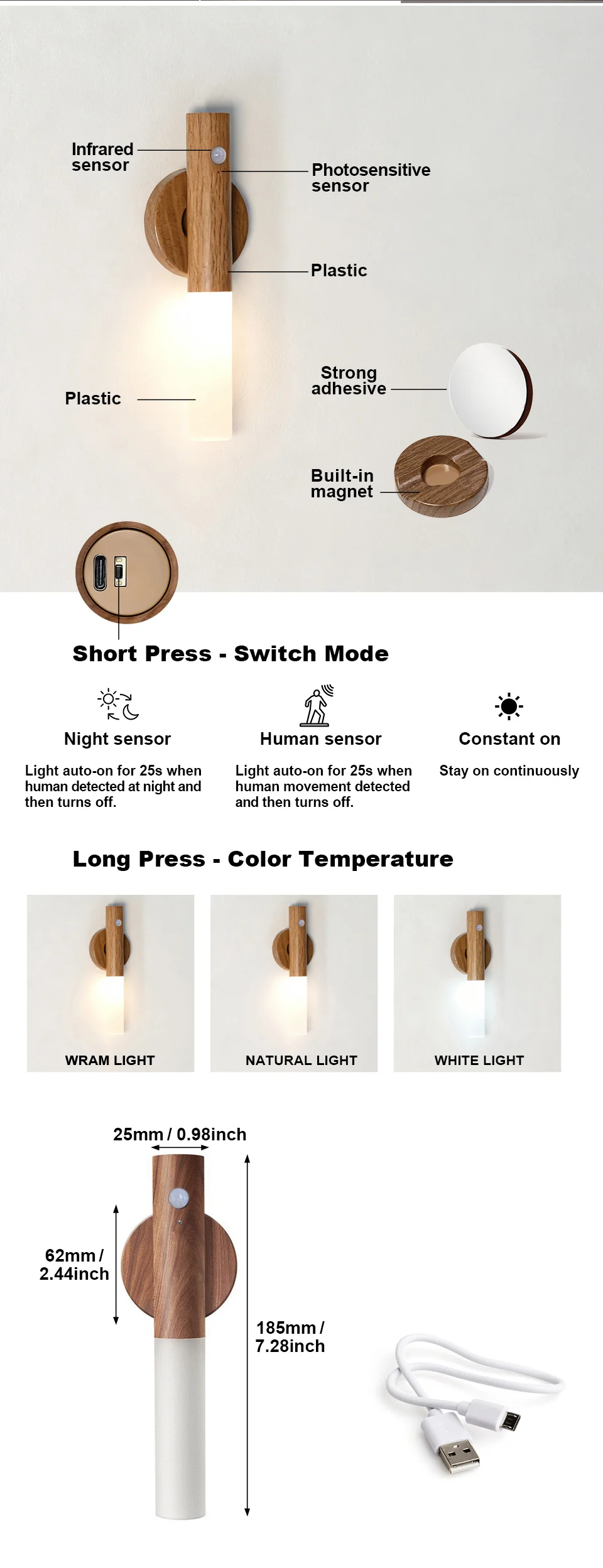 Funcionalidades: Night Light Wood Wall Lamp